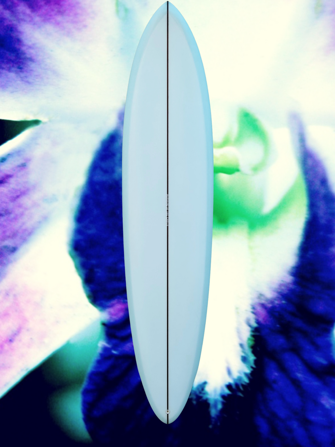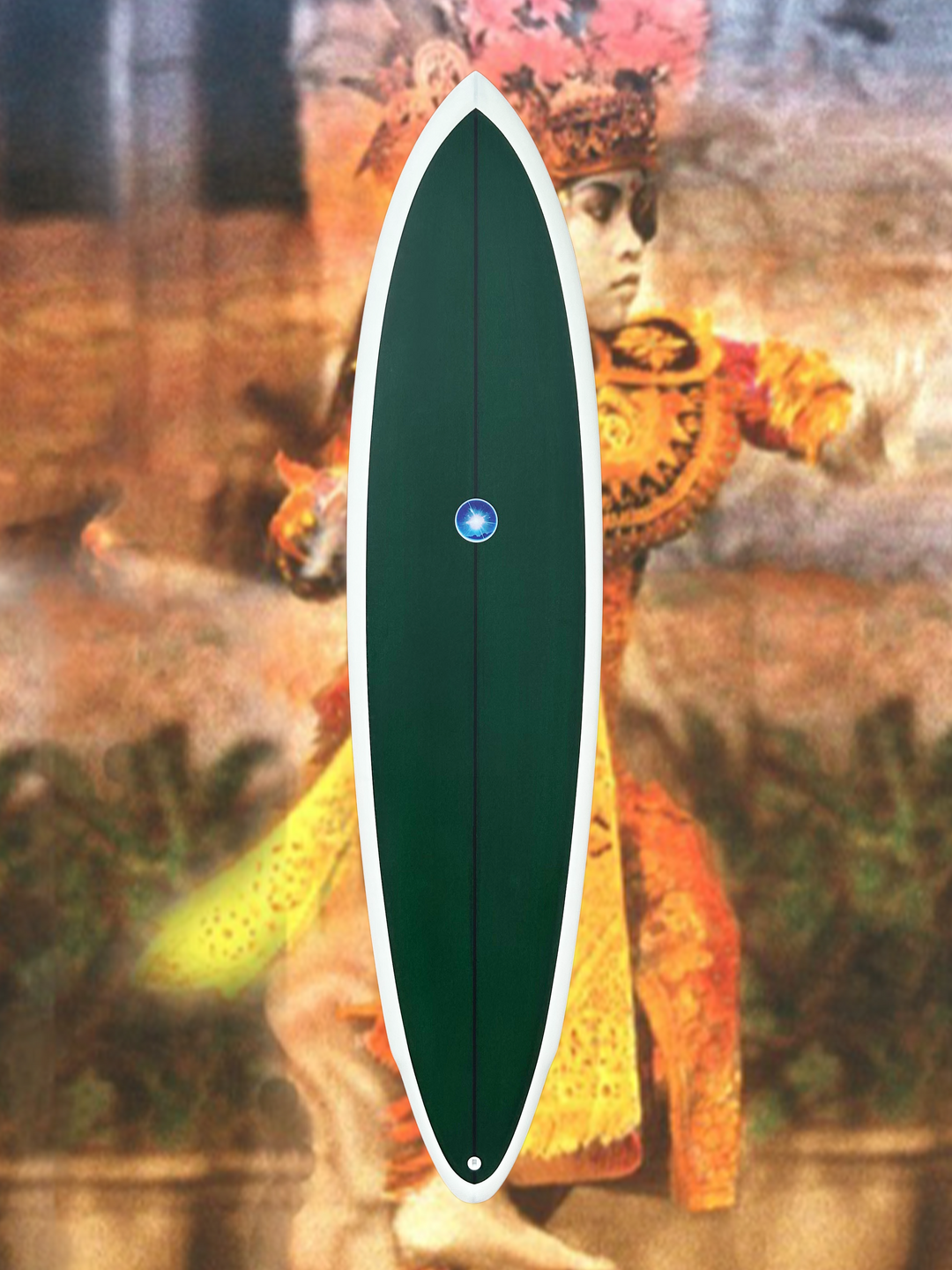 A user-friendly cruiser that can handle big surf. Full deck with a forgiving rocker profile and enough foam to help you get into anything, with a steep downrail allowing it to easily go on rail. The wing pintail and multiple fin configurations offer a ton of versatility and unique feelings.